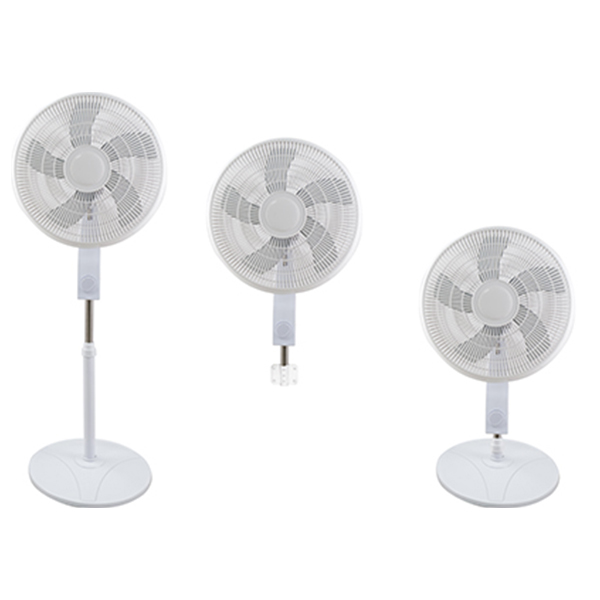 Ventilador de pie 3 en 1 de 16» – 120 V~60 Hz, 50 W, 5 aspas de PP, rejilla de plástico de 430 mm, control de 3 velocidades, base redonda resistente de 400 mm, altura de 1,25 mm.